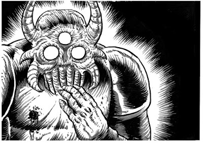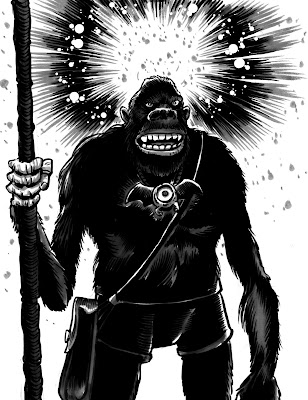 2. Upward thrust tusks of a boar, drools copiously, otherwise tall, lanky, lean, slender, muscle tone like beef jerky, seemingly puny arms imbued w/incredible strength, hurls great stones as giant then moves in for improbably huge cleaver attack